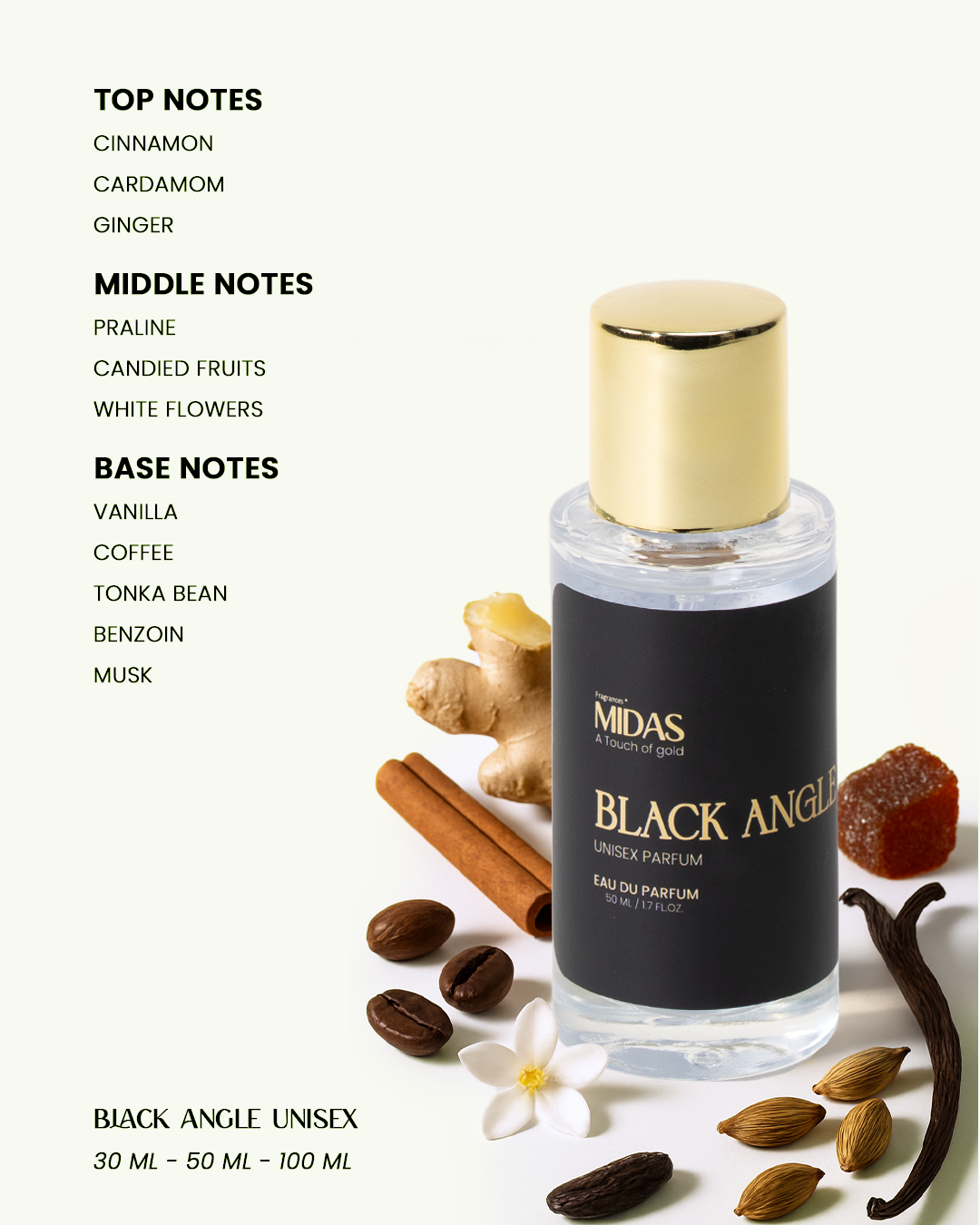 Dark, smooth, unforgettable—Black Angle wraps you in spicy cinnamon, sharp bergamot, and a soft swirl of vanilla and benzoin. It’s intense without being loud, like a secret whispered at midnight. For the ones who own the night.